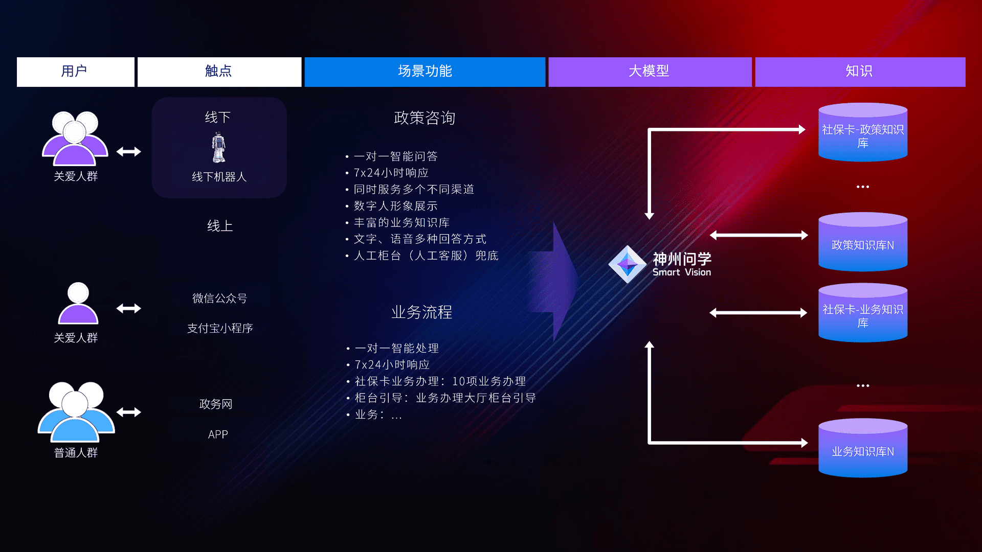 • 线上线下全覆盖:线上提供微信公众号、、、、支付宝小程序、、、、政务网、、app多种渠道,,,,与线下机器人形成完整服务体系。。。